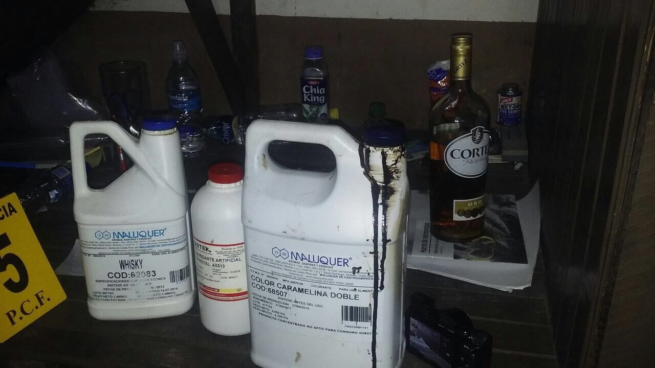 Los oficiales hallaron en la casa miles de etiquetas de vodka, ron y tequila mientras que en la bodega encontraron las herramientas que utilizaban para fabricaban el licor.