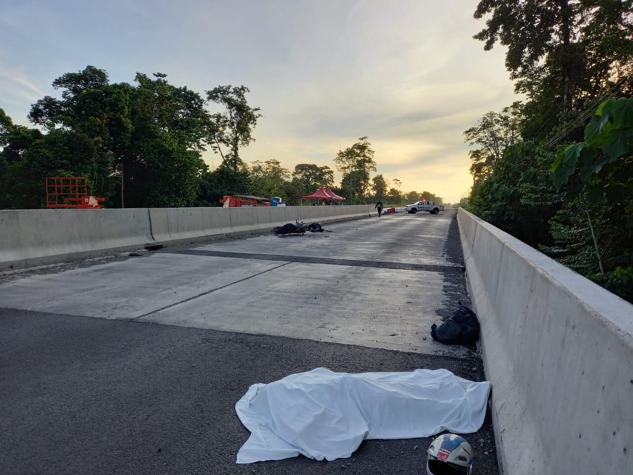 Al parecer no vio unos conos de advertencia que había colocados como parte de los trabajos de ampliación que se están haciendo en la carretera, pegó contra ellos y perdió el control de la moto en la que iba.