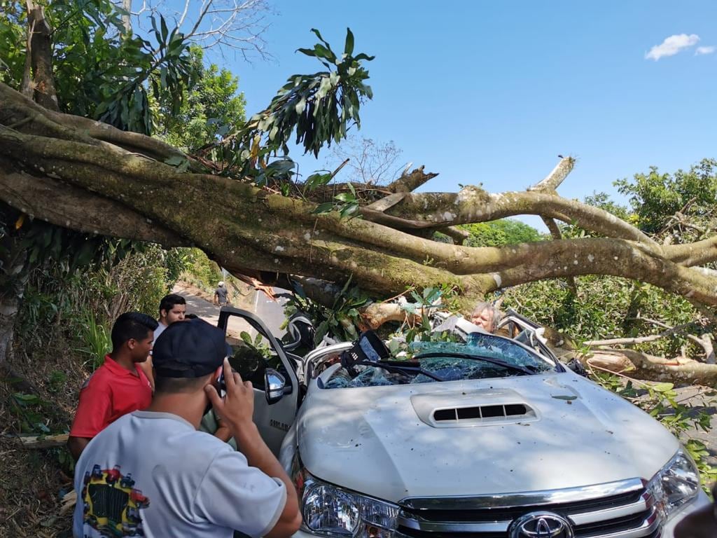 El 22 de noviembre otro árbol también cayó sobre una buseta en Tres Equis de Santa Marta de Turrialba, esa vez cinco personas se llevaron el susto de sus vidas.