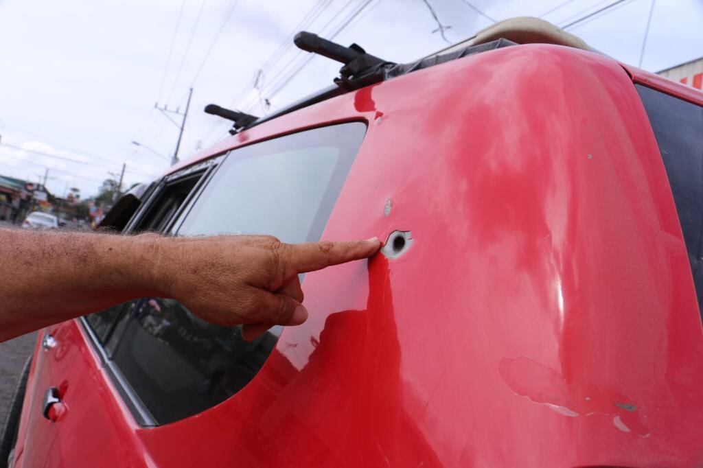 Según una fuente ligada al caso, las balas impactaron varios edificios entre ellos el banco, unas tiendas y un taxi que estaba estacionado a 54 metros de distancia, al otro lado de la calle, por lo que la desgracia pudo ser más grande todavía, ya que los sospechosos volaron bala a lo loco.
