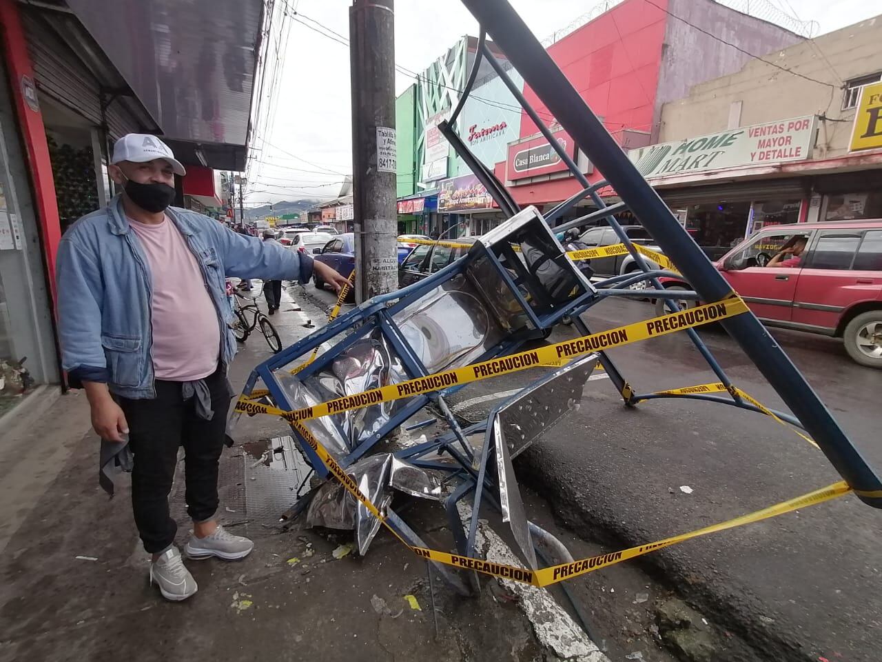 Según el reporte de las autoridades, el tortero, quien es de apellido Solano y tiene 28 años, viajaba a gran velocidad desde Los Ángeles hacia el centro del cantón y cerca de la tienda Ekono chocó con un vehículo, cuando ya se creía que todo había pasado a los 100 metros volvió a chocar contra uno de los chinamos que están sobre la acera.