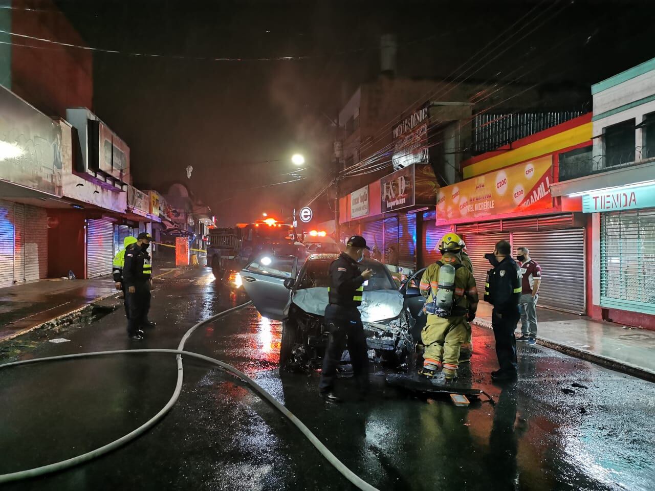 El conductor siguió en su carro, pero a los 25 metros se tuvo que detener porque se le empezó a quemar la nave.