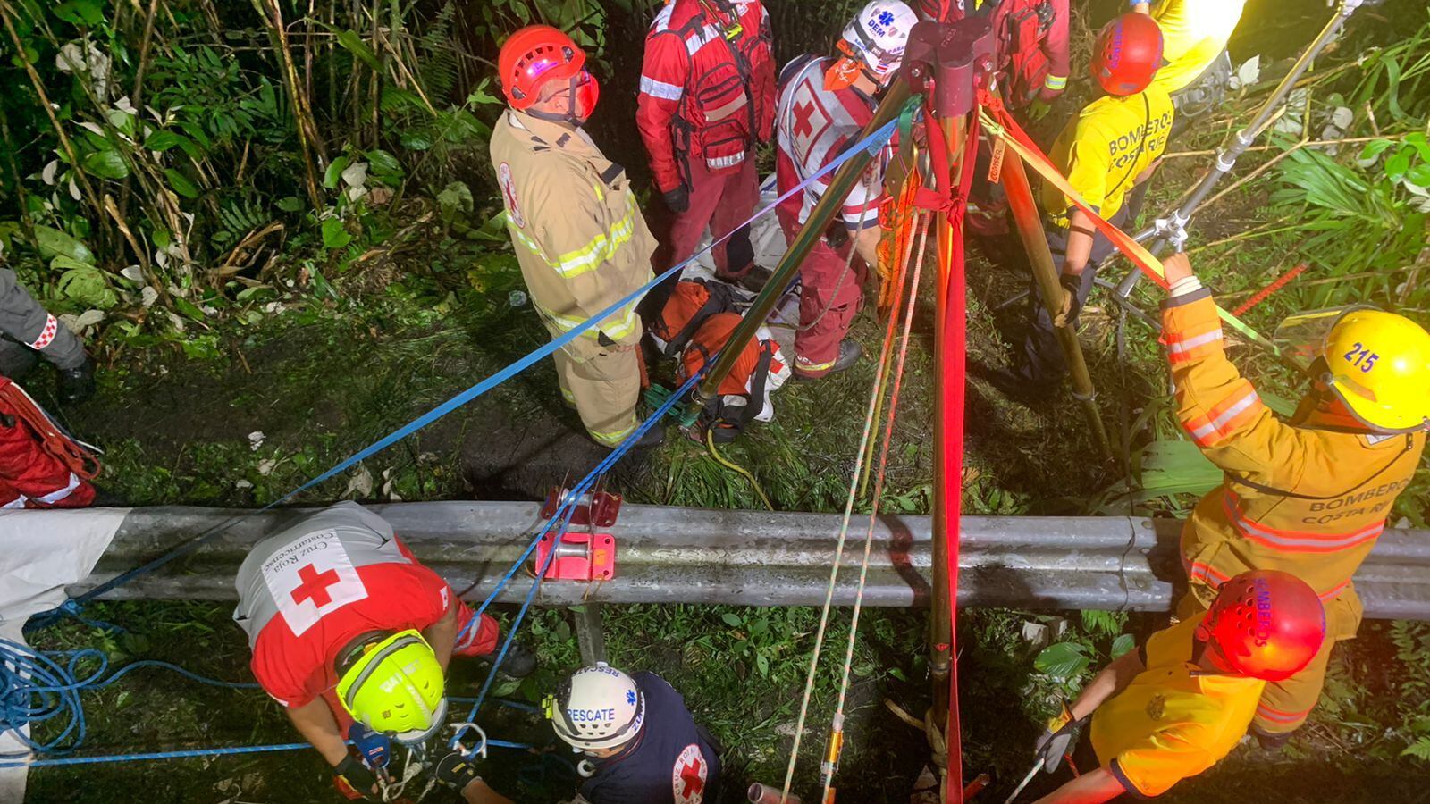 A las 8:30 p.m. los rescatistas se mantenían en el sitio trabajando, usaban cuerdas de más de 200 metros de largo para llegar hasta el carro; sin embargo, la oscuridad, la lluvia y lo mojado del terreno complican el rescate.