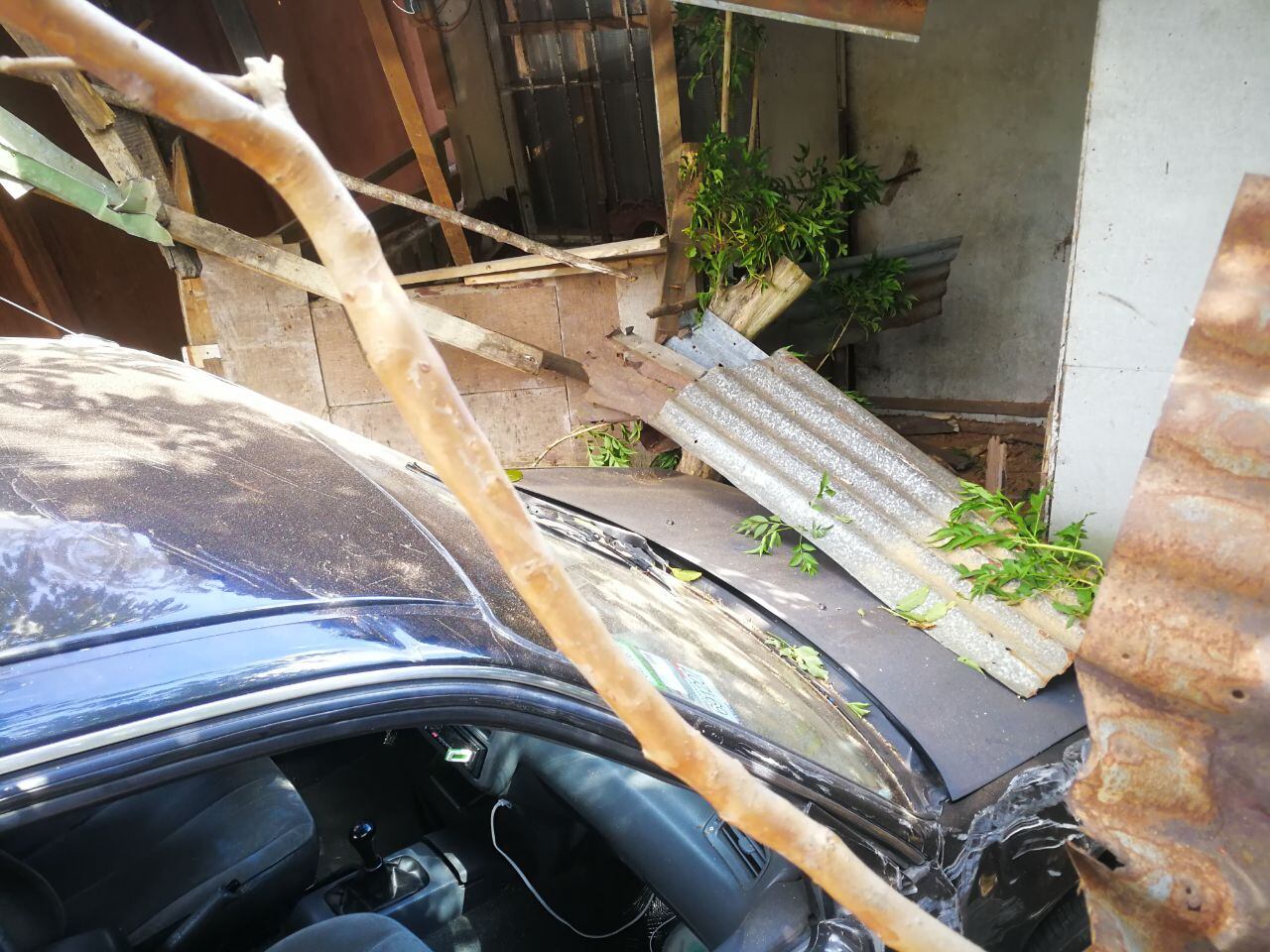 El aparatoso accidente sucedió a eso de las 2 p.m. en el Alto de Quitirrisí de Mora, precisamente en una humilde vivienda que está 500 metros antes de la escuela vieja de esa comunidad, sobre la calle que lleva hacia San José.
