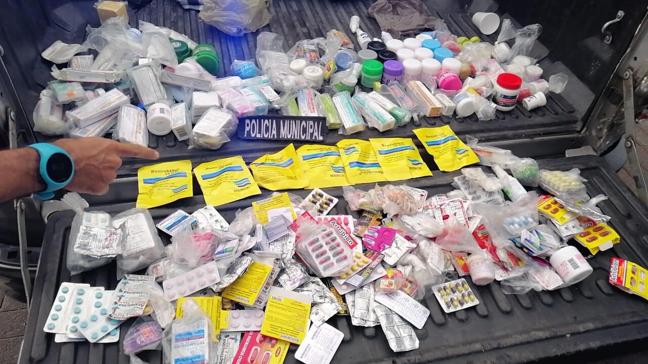 Tres cajas llenas de medicinas decomisó la Policía Municipal en lo que ya es un gran “consultorio médico” que usan a placer los vendedores ambulantes, específicamente en los bulevares.