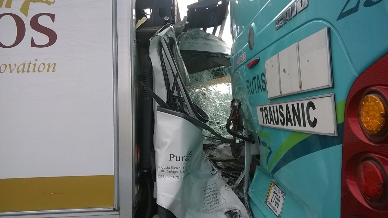 El accidente ocurrió frente a Recope en sentido San José a Cartago. La colisión generó largas presas en ambos sentidos. El camión pertenece a la empresa Puratos. Los dos chunchones circulaban en el mismo sentido.