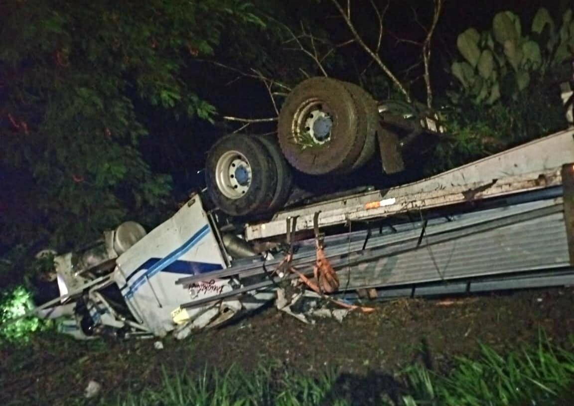 Un grupo de bomberos usó equipo hidráulico para cortar las latas de la cabina y sacar al trailero, pero ya no había nada qué hacer por él.