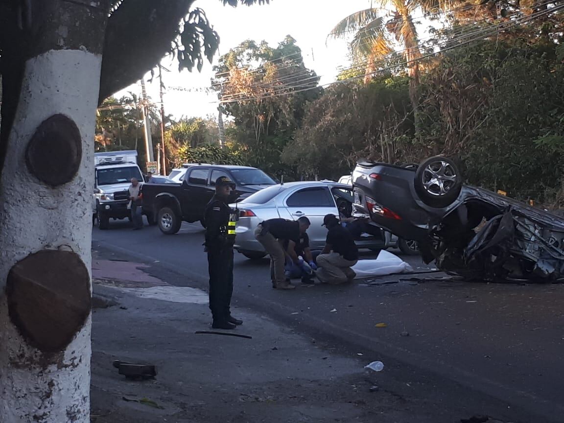 Un hombre perdió la vida debido a un aparatoso accidente luego de que el carro en el que viajaba chocó contra un poste y se volcó quedando con las llantas para arriba.. Otro hombre, que aparentemente también iba en el chuzo, resultó herido de gravedad.
