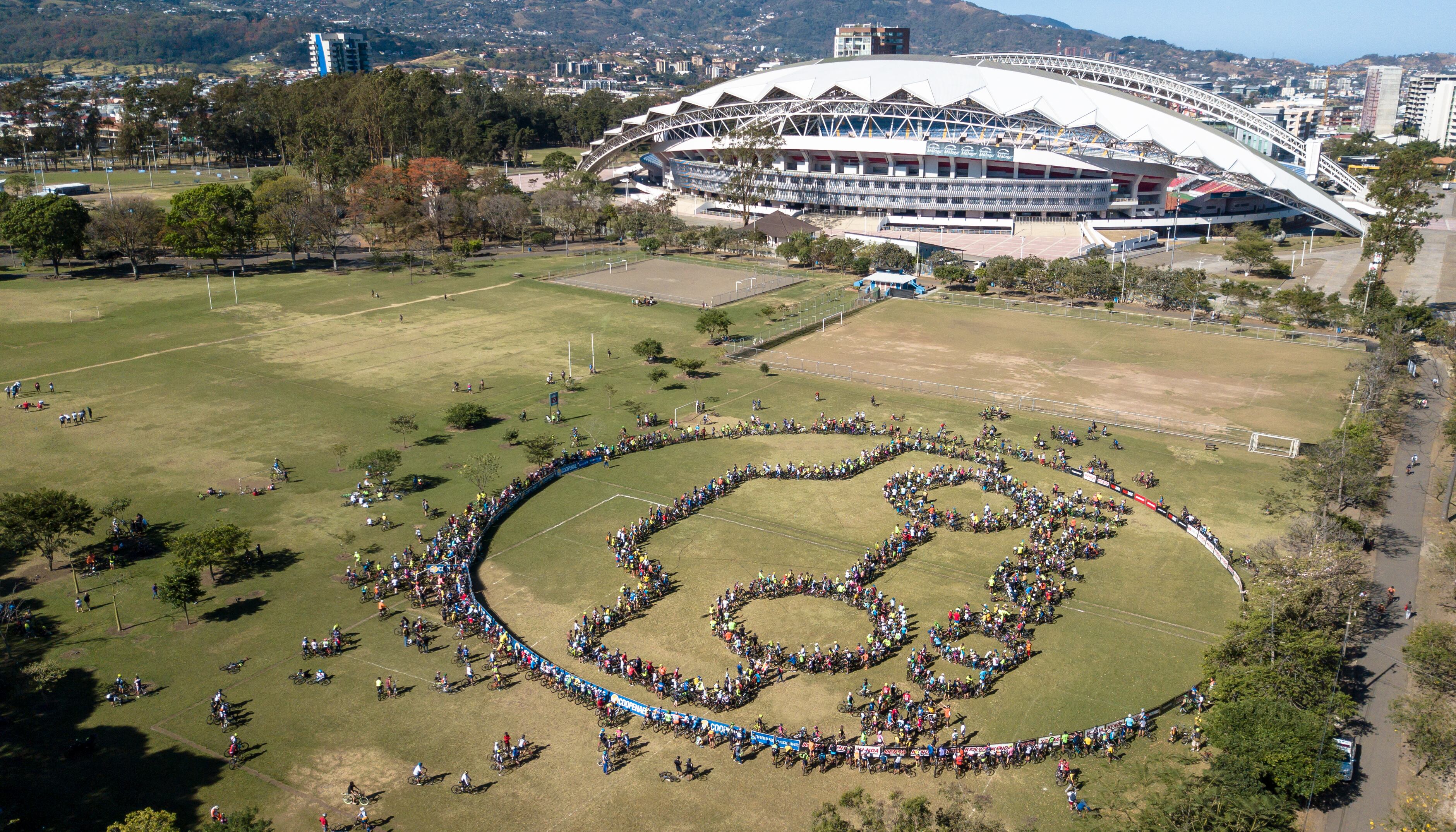 Tal y como sucedió en la primera edición, los ciclistas se unieron para formar una bicicleta gigante que solo podía ser vista desde las alturas, pero sin duda alguna la actividad más esperada era el recorrido hasta las inmediaciones del Walmart en Curridabat.