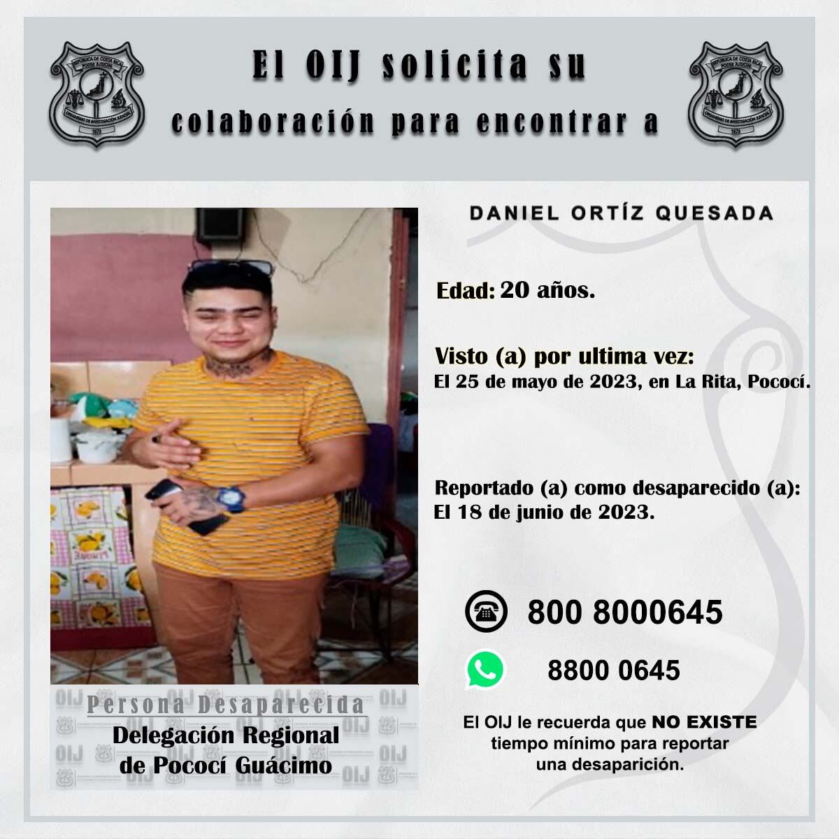 Además de estas cinco desapariciones, hay una sexta denuncia de mismo tipo, se trata de Daniel Ortiz Quesada, de 20 años, a quien lo vieron por última vez el 25 de mayo en La Rita de Pococí; sin embargo, la denuncia la pusieron en el OIJ hasta este domingo 18 de junio.