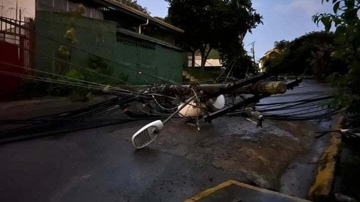 La caída de cinco postes en Villa Nueva de Desamparados ha dejado al menos a 40 mil personas sin electricidad y también sin el servicio de buses.