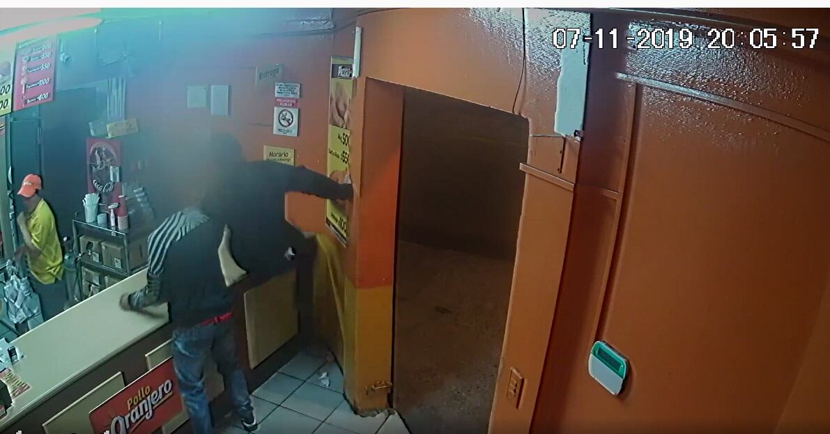 Este caso comenzó el jueves 11 de julio del 2019, a las 7:45 de la noche, cuando asaltaron una venta de pollo en Plaza Víquez, San José. En una cámara de seguridad se ve cuando dos muchachos en pantaloneta entran al local y amenazan a dos vendedores.