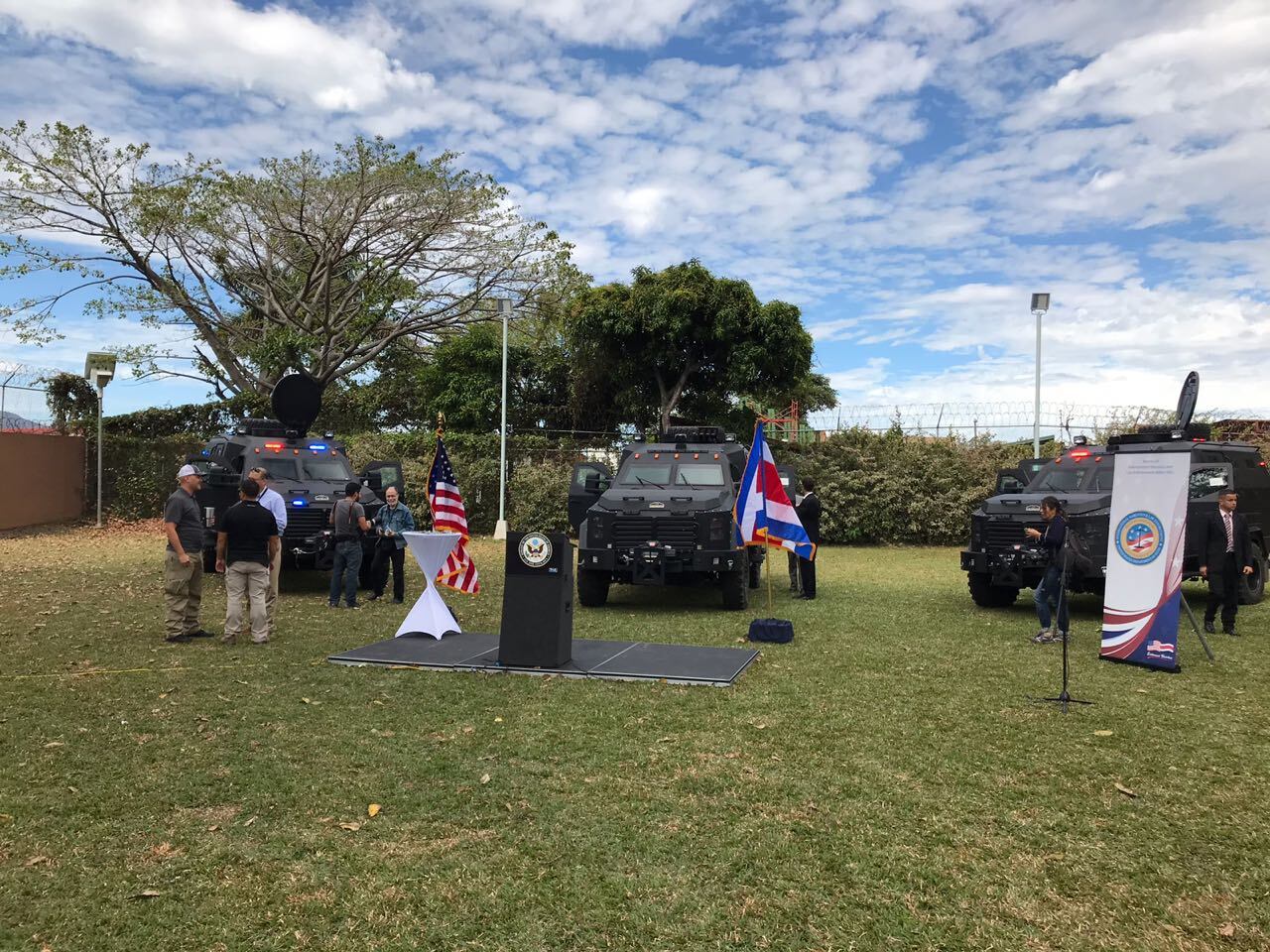 La mañana de este jueves la embajada de Estados Unidos le entregó a las autoridades ticas tres chuzos que permitirá a los policías hacer operativos de alta peligrosidad con mayor seguridad.
