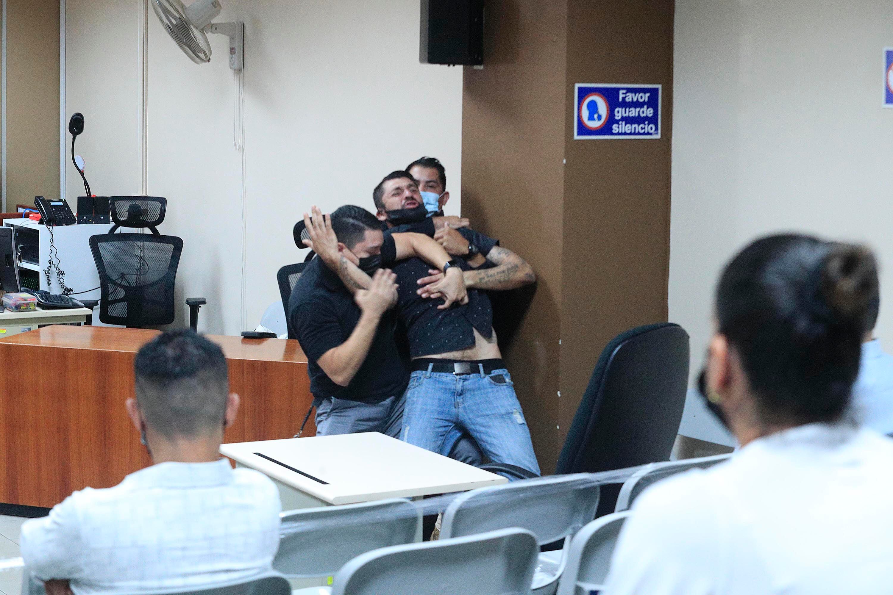 Un hombre identificado como Jonathan Araya Castillo pataleó, gritó y decía ser inocente al ver que los agentes de cárceles del OIJ se le acercaban para esposarlo para llevárselo a la cárcel donde pasará los siguientes 27 años.