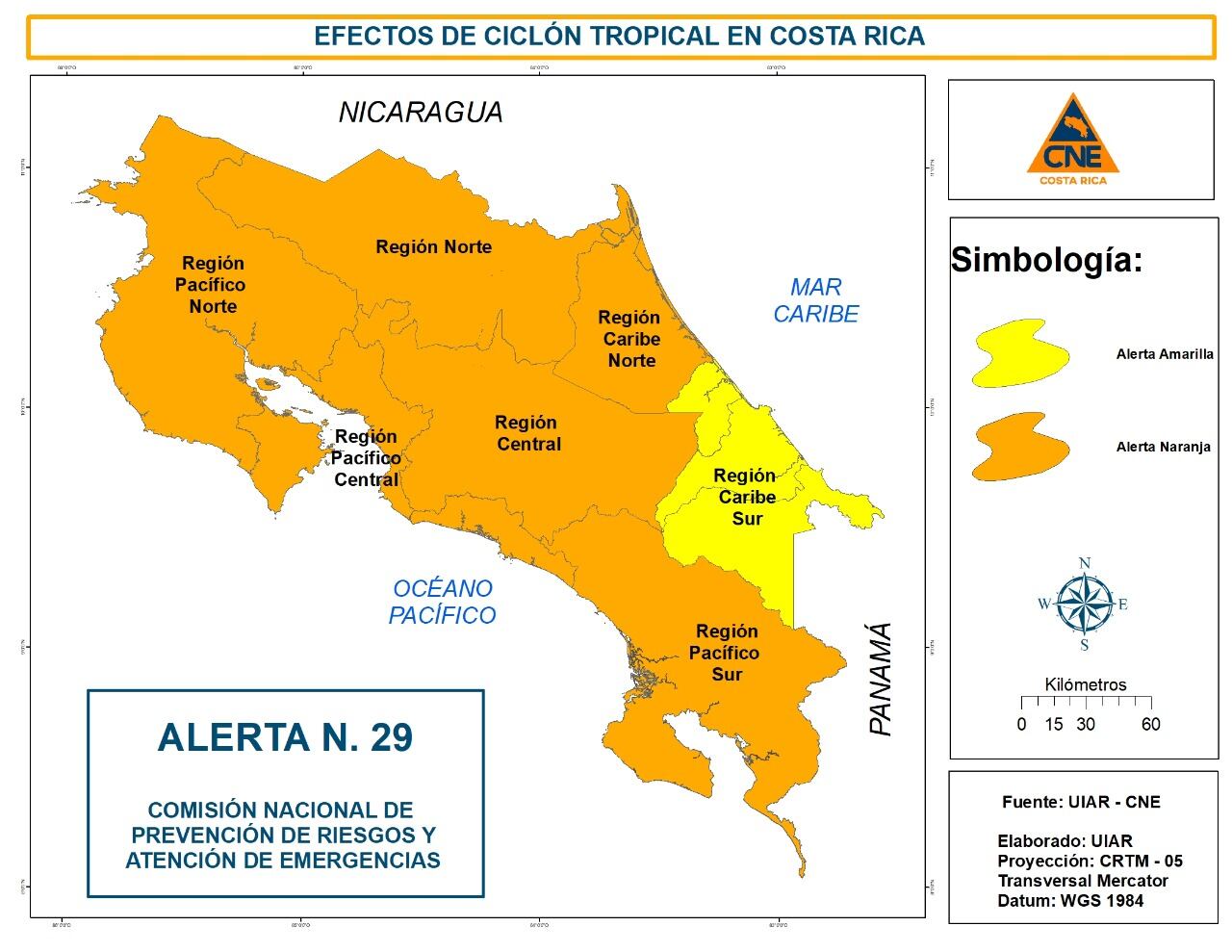“El sistema estaría llegando a la zona fronteriza con Nicarague el viernes, aproximadamente las 6 de la tarde y se trasladaría durante la noche del viernes, madrugada del sábado y más o menos al mediodia estaría saliendo por el oceano Pacífico”, añadió.