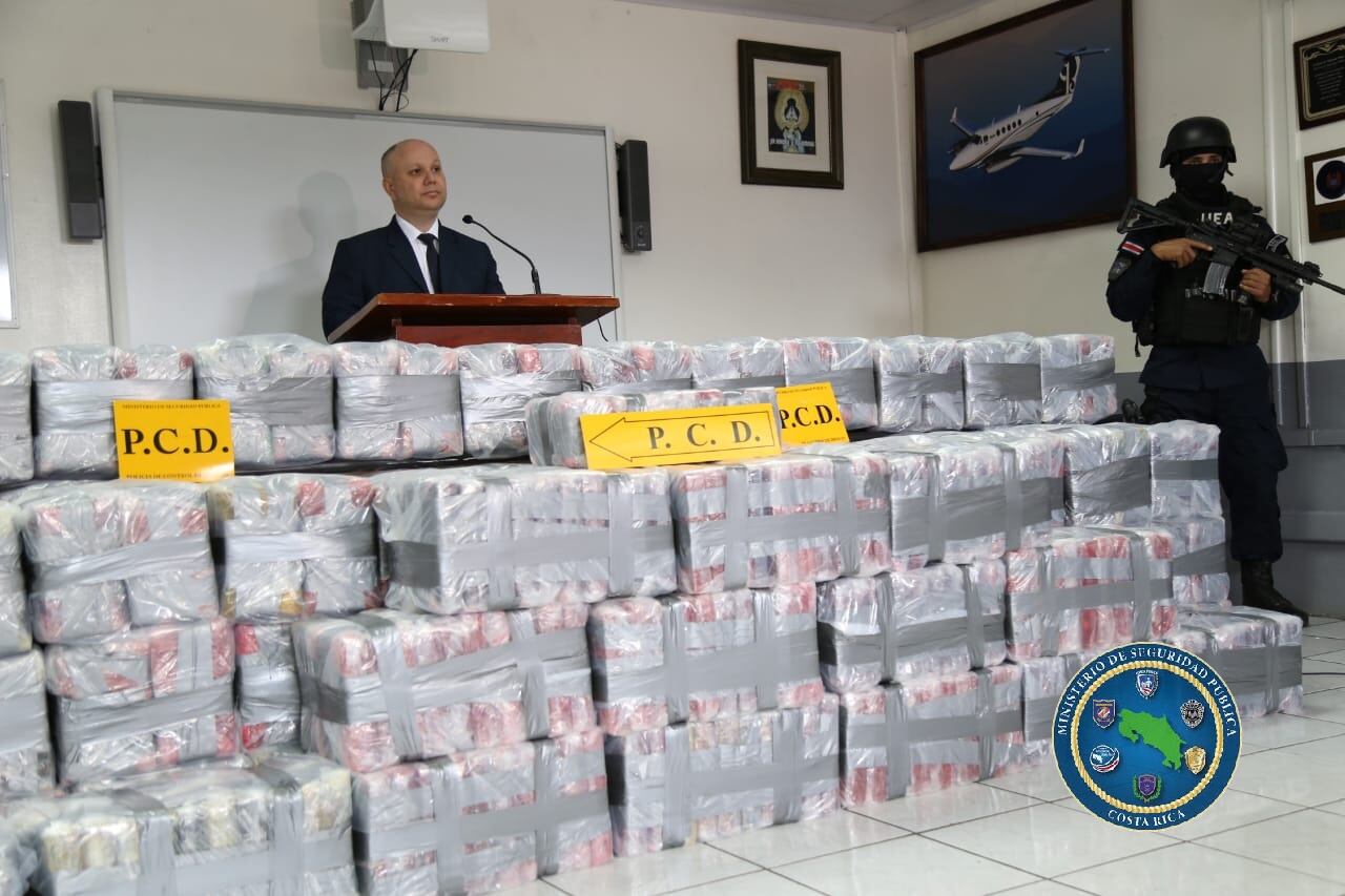 "En este caso puedo decirles que la incautación son 1.250 paquetes que probablemente tengan un peso superior a esta cantidad (...) sabemos que este cargamento tiene un perjuicio social, pero también debemos cuantificarlo desde el punto de vista económico. Un kilo de cocaína en Costa Rica cuesta unos $7.000 en colones aproximadamente unos ¢4 millones. En Europa un kilo puede costar entre 26.000 a 32.000 euros para un precio aproximado de ¢18,5 millones. Esta cantidad de cocaína ya puesta en los mercados europeos podría estar costando los ¢23.000 millones”, dijo el ministro.