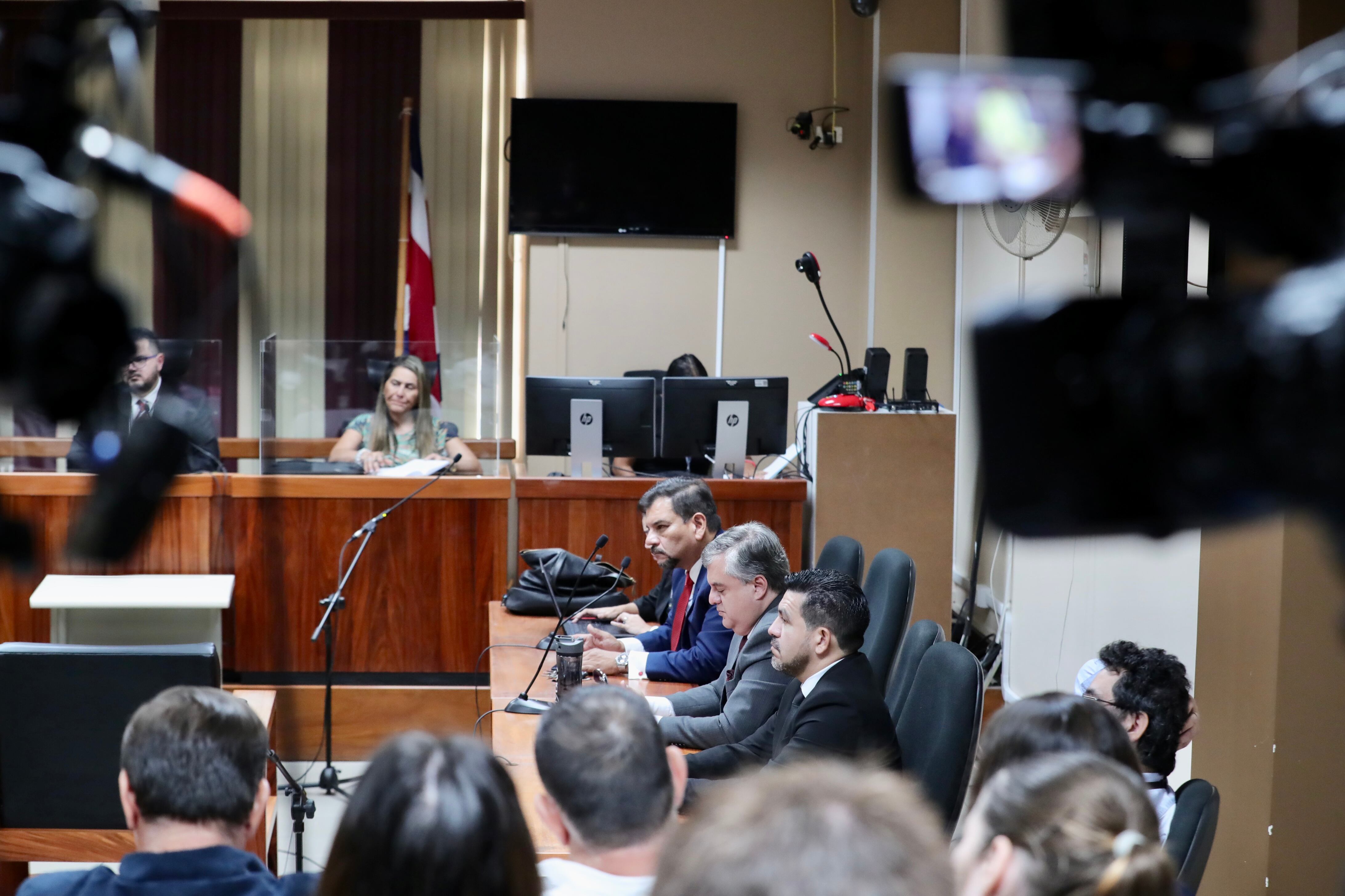 Para la audiencia llegaron los imputados Bodaan, Miranda Izquierdo y Herrera Martínez, al igual que los abogados; solo están por videoconferencia Margot Arguedas, abogada de Herrera, los fiscales, y Alberto Delgado, abogado de la familia Cedeño.
