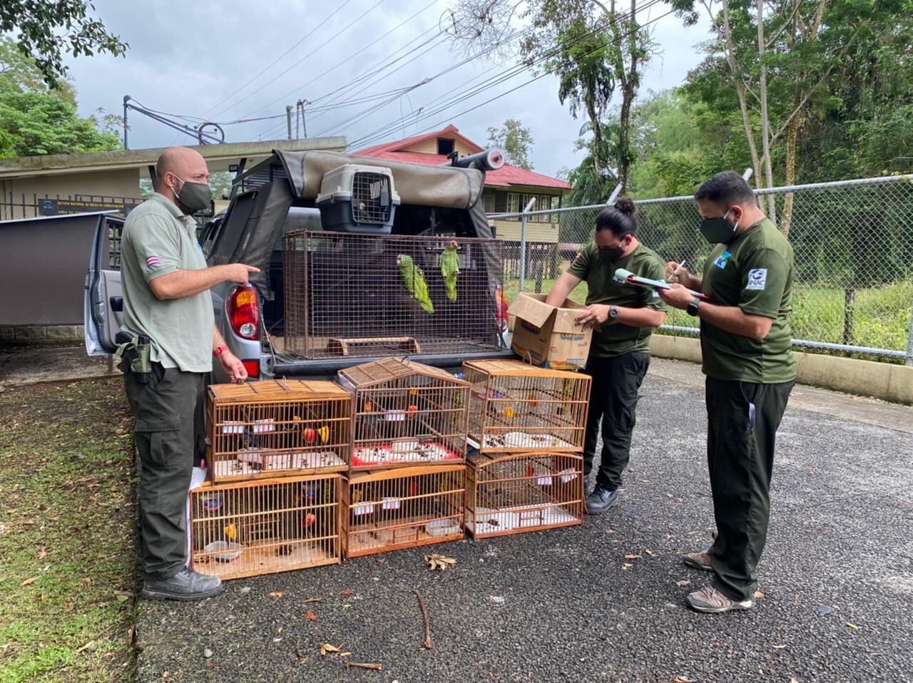 Una denuncia anónima ayudó a las autoridades a localizar loros de frente roja, lapas verdes, jilgueros y chucuyos que permanecían encerrados en jaulas, aunque son considerados animales silvestres.