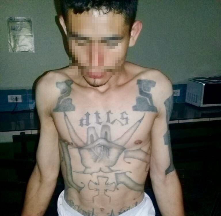 La Fuerza Publica atendió el llamado de auxilio y al llegar notó que el presunto delincuente tenía muchos tatuajes y que sus características coincidían con los que usan los integrantes de la mara salvatrucha.