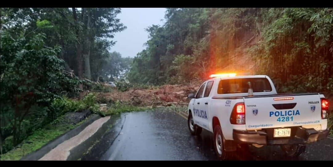 La ruta nacional 3, en el sector del monte del Aguacate, entre Atenas y San Mateo, se encuentra cerrada por los deslizamientos provocados por las fuertes lluvias que han caído este viernes 9 de setiembre.