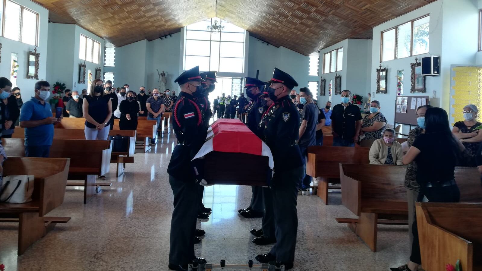 Cientos de personas, entre familiares y conocidos del valiente policía, se reunieron y a las 10 de la mañana participaron de la misa de despedida en la iglesia de Carrizal de Alajuela. Luego de eso acompañaron el cuerpo hasta el cementerio local.
