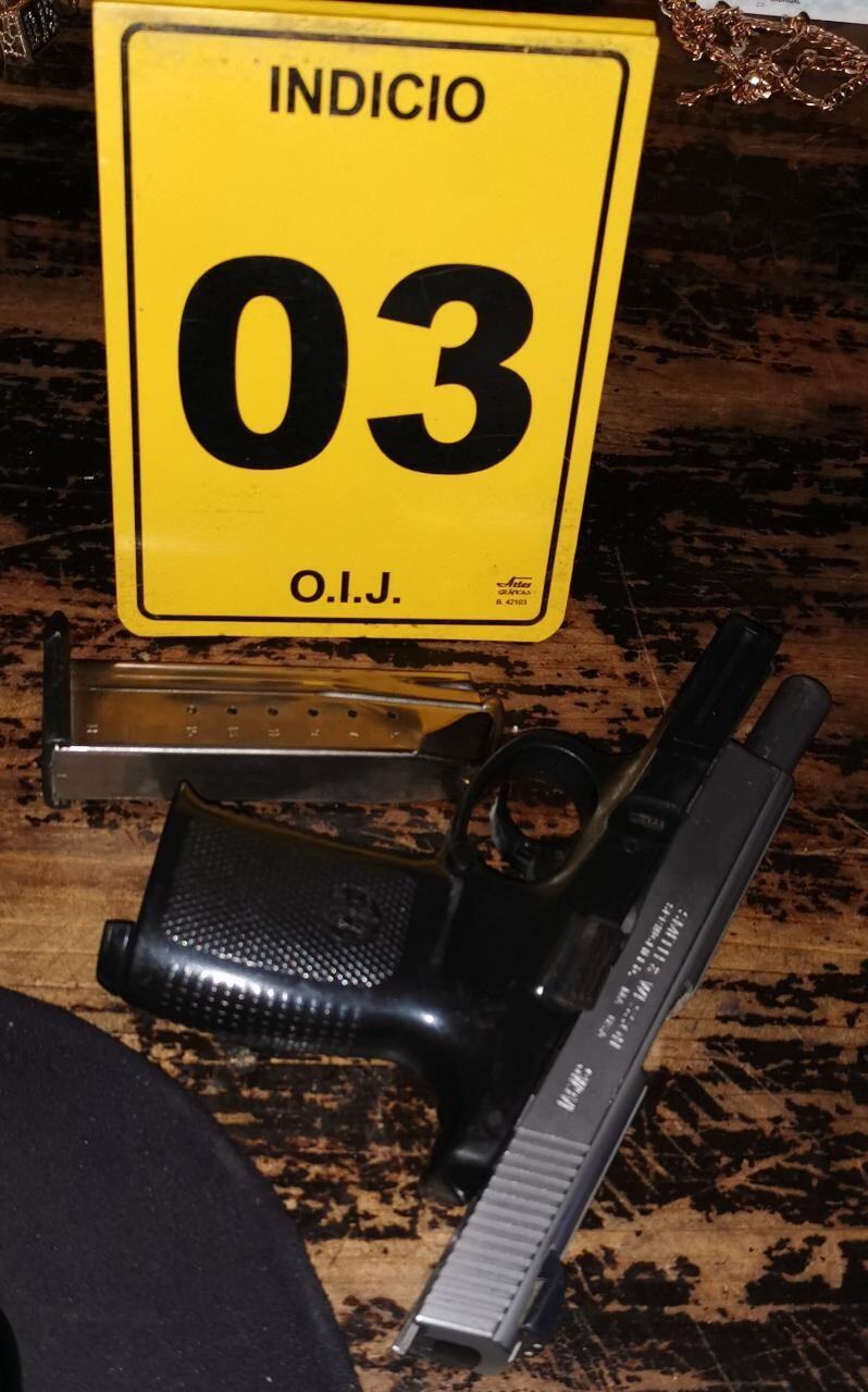 En los cuatro allanamientos decomisaron 700 piedras de crack, un millón y medio de colones en efectivo y tres armas de fuego de calibres 22, 38 y 9 milímetros.