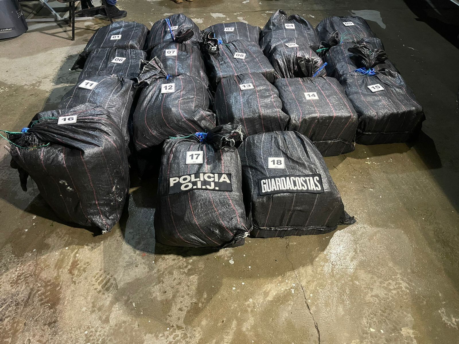 La embarcación, con matrícula Quepos PQ-7807, fue llevada hasta el puerto de Quepos, donde fue revisada por oficiales de la Policía de Control de Drogas, quienes determinaron que esta transportaba 722 paquetes de cocaína, cada uno de aproximadamente un kilogramo.