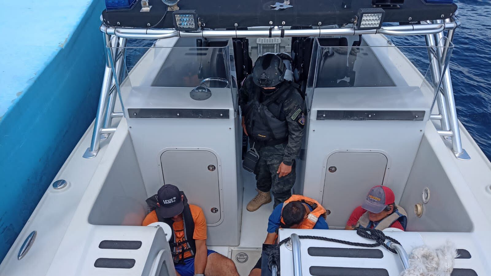 “Luego de abordar la lancha y aprehender a la tripulación, los guardacostas realizaron una revisión, lo que permitió encontrar varios paquetes de posible droga, los cuales estaban ocultos en la hielera de la embarcación”, informó Seguridad Pública.