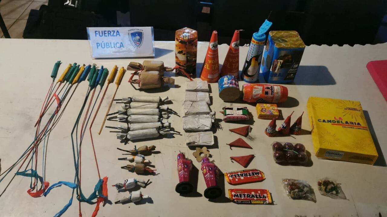 “Tras revisar las pertenencias de los sospechosos, la Fuerza Pública determinó que se trataba de 1.400 unidades de bombetas tipo triquitraques y seis cuartos de dinamita, todo lo cual constituye pólvora explosiva de alto poder destructivo. Los sujetos también llevaban artículos de lucería, entre estos 105 silbadores y 24 volcanes, los cuales también fueron incautados por haber sido introducidos ilegalmente al país”, dijo la Policía.