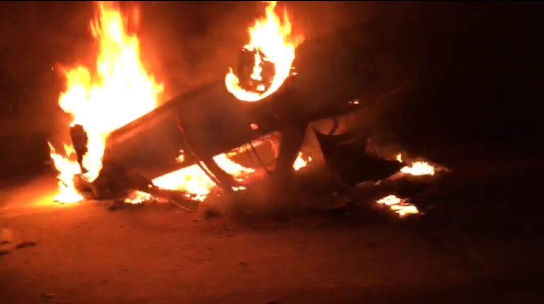 Un padre y su hijo mayor de edad se salvaron de milagro luego de que el carro en el que viajaban no solo se volcó, sino que también alzó en llamas.