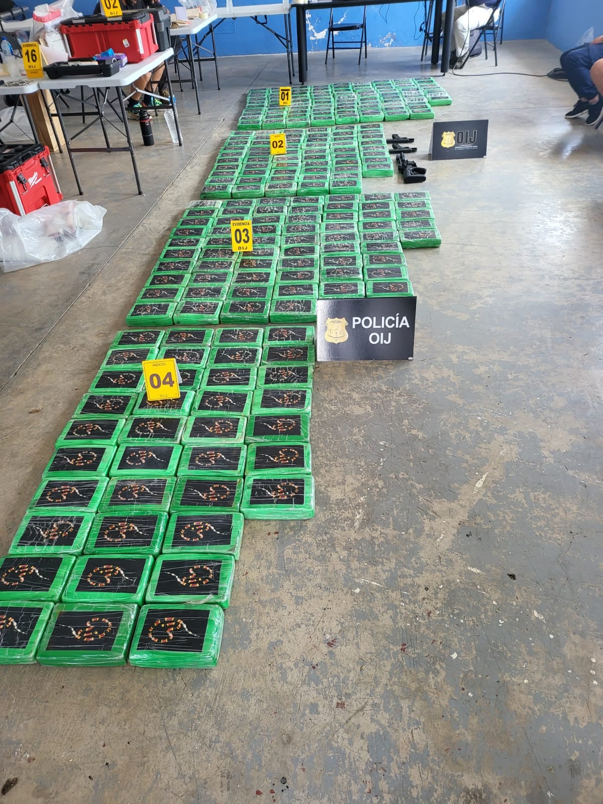 Además decomisaron un fusil de largo alcance M4, dos armas de fuego de 9 milímetros, municiones y $10 mil en efectivo (poco más de ¢5 millones) y ¢3 millones.