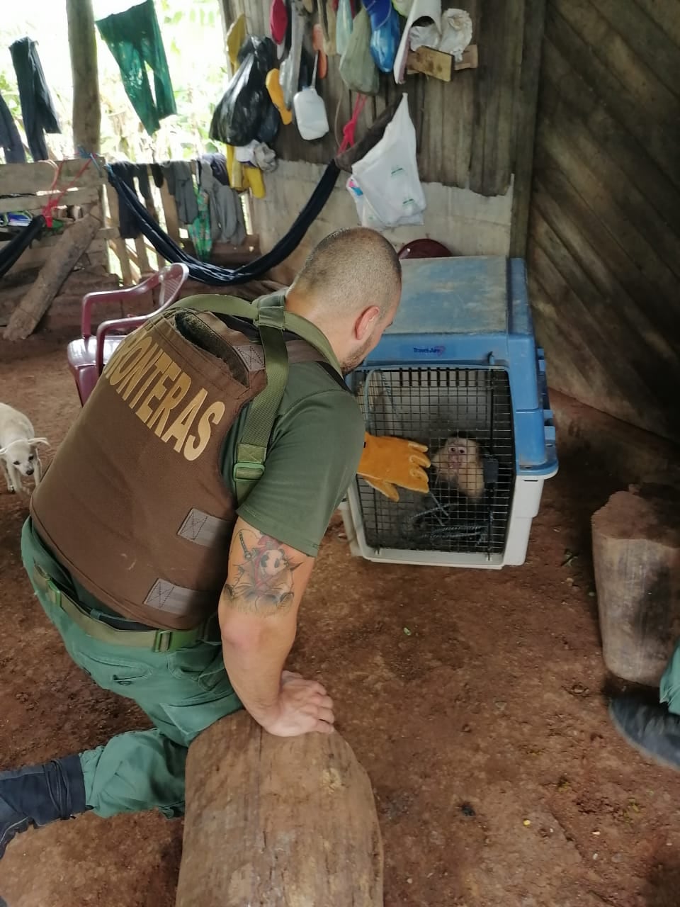“Oficiales fronterizos descubrieron, dentro de una vivienda, un mono carablanca que un lugareño tenía como mascota.