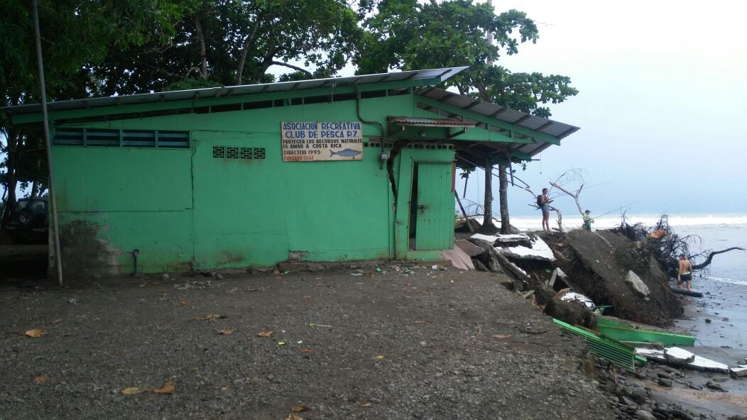 La fuerte marea de este domingo en playa Dominical, en la desembocadura del río Barú, destruyó una buena parte del albergue del Club de Pesca, lugar en el que pescadores de la zona pasaban el rato y compartían celebraciones como el Día del Padre.