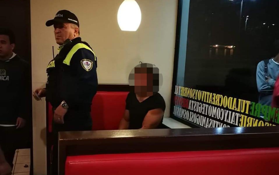 Los uniformados arrestaron al sospechoso, quien tenía golpes en varias partes del cuerpo, ya que, en apariencia, unas personas que estaban en el local y se enteraron de lo que pasó lo agarraron a golpes.