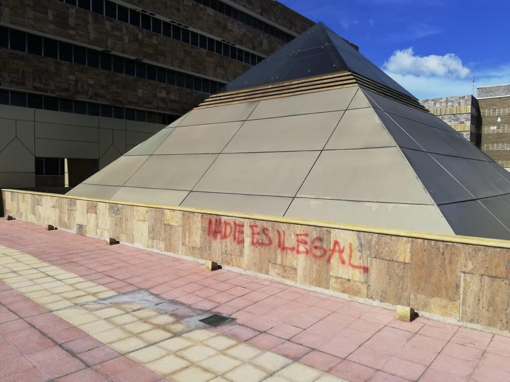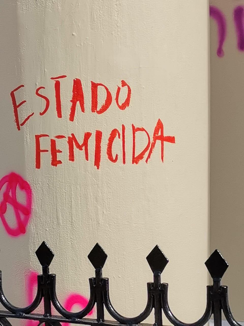 Después de entregar el documento varias de las manifestantes se dirigieron hacia los edificios del Poder Judicial y usando distintos tipos de pinturas rayaron las paredes de la Defensa Pública, el paraninfo, las escaleras y piso de la plaza de la Justicia, así como la esfera hecha por Bonilla.