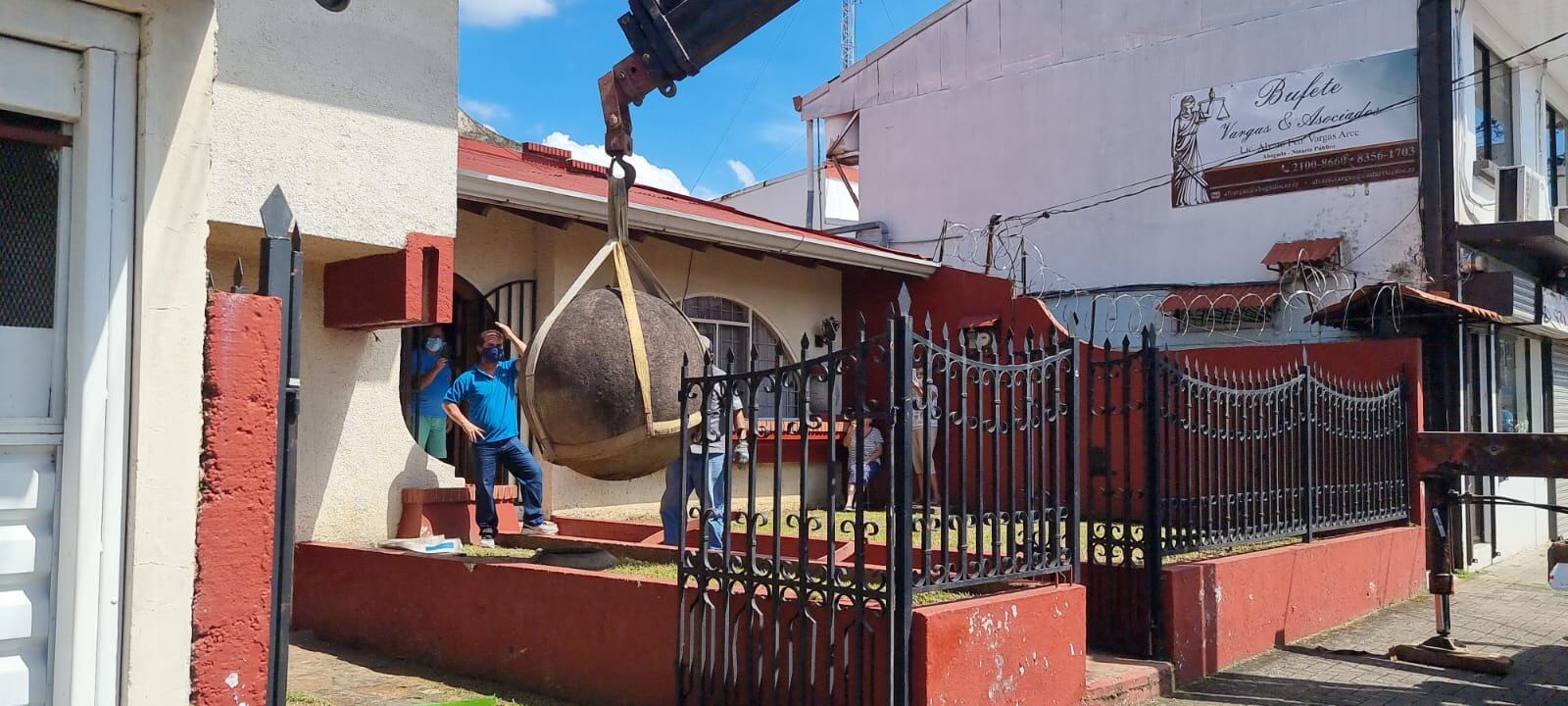 La esfera precolombina fue recuperada la mañana de este viernes 5 de noviembre por funcionarios del Museo Nacional que se presentaron a la casa de doña Kembly, ubicada en el puro centro de Alajuela, específicamente 50 metros al este de la Cruz Roja local.
