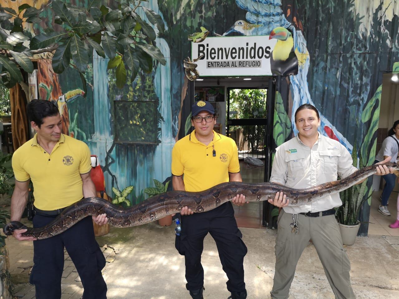 En el Refugio Herpetológico de Santa Ana están impresionados con una culebrota boa constrictor que les llevaron los bomberos después de rescatarla y que es la más grande que les ha llegado.