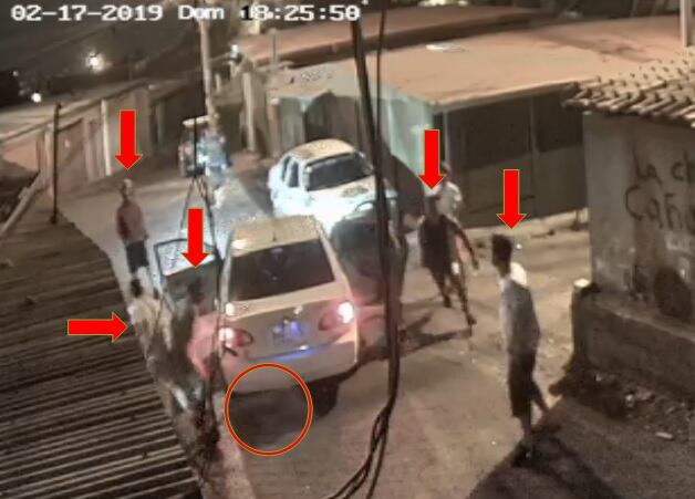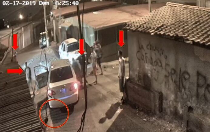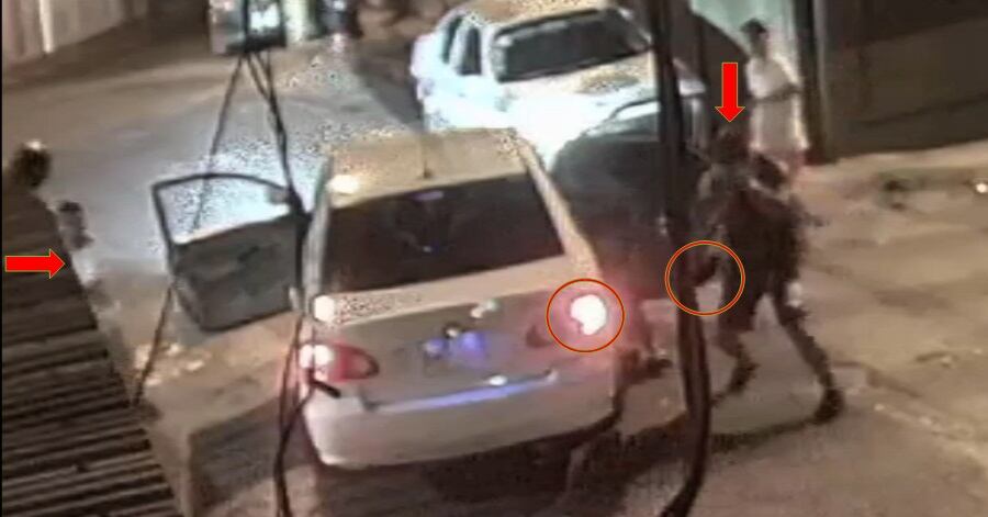 Las luces traseras del carro de Kahel estuvieron encendidas y se observa que una de las balas apaga el foco derecho y otra le da a Kahel en un bolsito que anda en el pecho. Esa bala dio en su celular y por eso no resultó herido, el celular fue presentado como prueba.