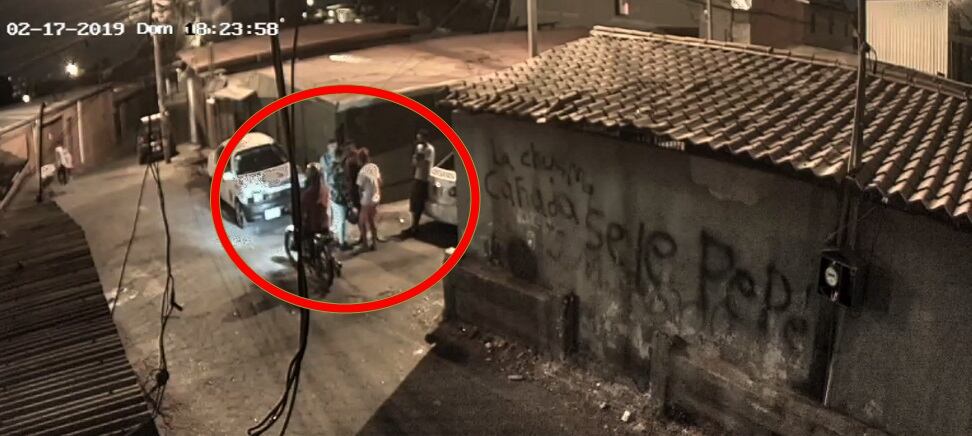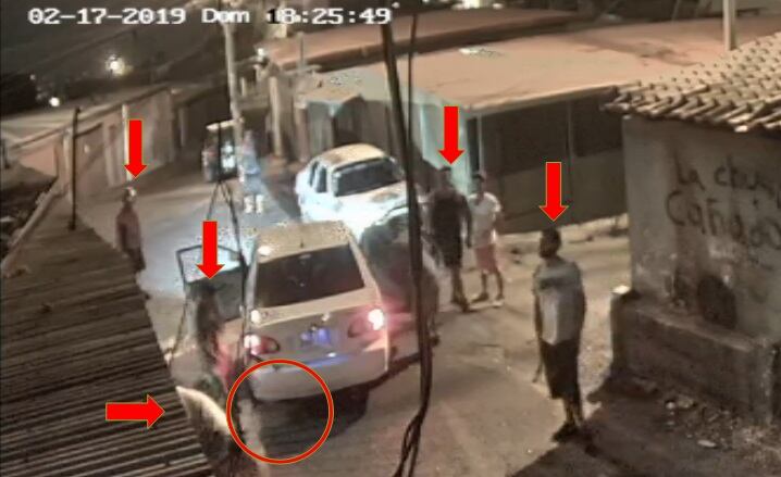 Después se ve al modelo parado en la esquina frente a la vivienda de Josué, conversando con otros muchachos, también se ve a Metralleta salir y pasar frente a ellos.