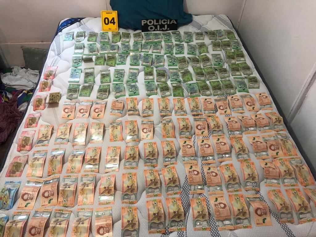 La oficina de prensa del Organismo de Investigación Judicial (OIJ) informó que han decomisado 19 millones de colones, $33.000 (unos 19 millones de colones) y nueve carros, pero aún los agentes se encuentran trabajando en los sitios allanados.