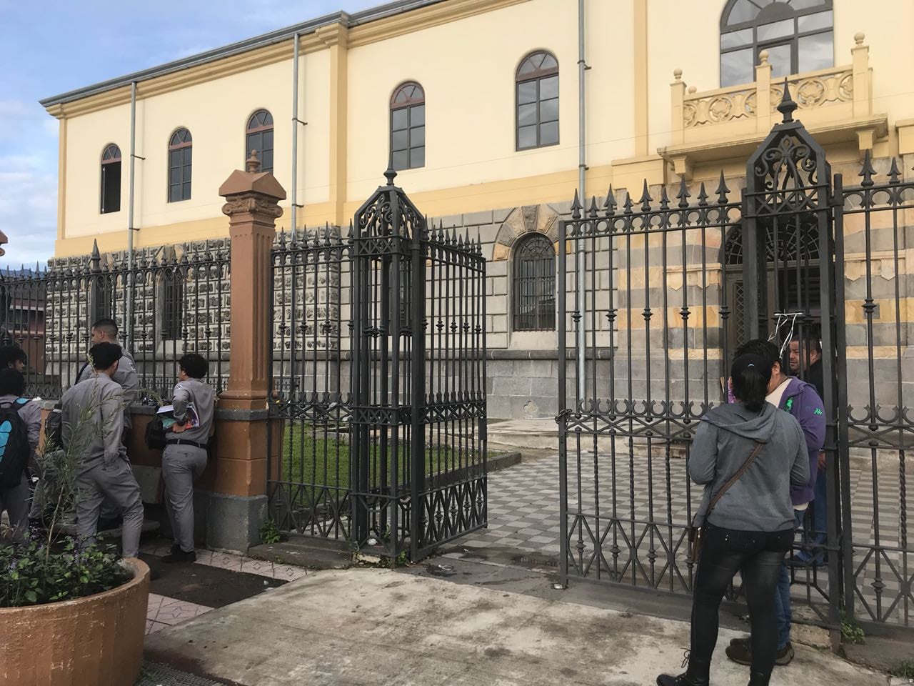Con gritos, ofensas y tirando cosas, así fue como varios alumnos y profesores del Liceo de Costa Rica la emprendieron contra unos policías municipales que bajaban placas de los carros que estaban mal estacionados.