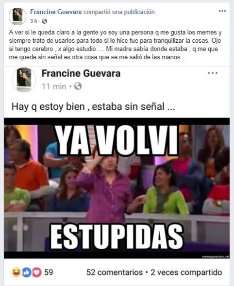 Guevara también publicó que su mamá sabía donde estaba, pero al quedarse sin señal de celular, la situación se le salió de las manos.