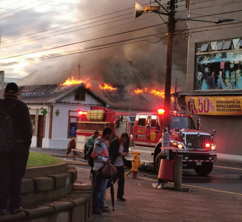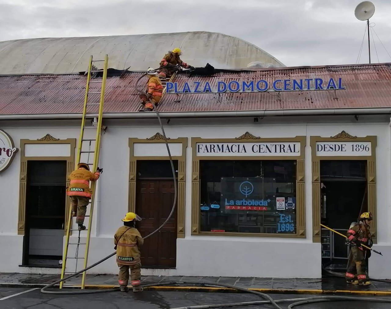 El incendio ocurrió este lunes a las 5:30 de la mañana en el centro comercial Plaza Domo, al costado sur de las Ruinas de Cartago, y que es conocido porque ahí se encuentra la Botica Central, que fue construida en 1886.