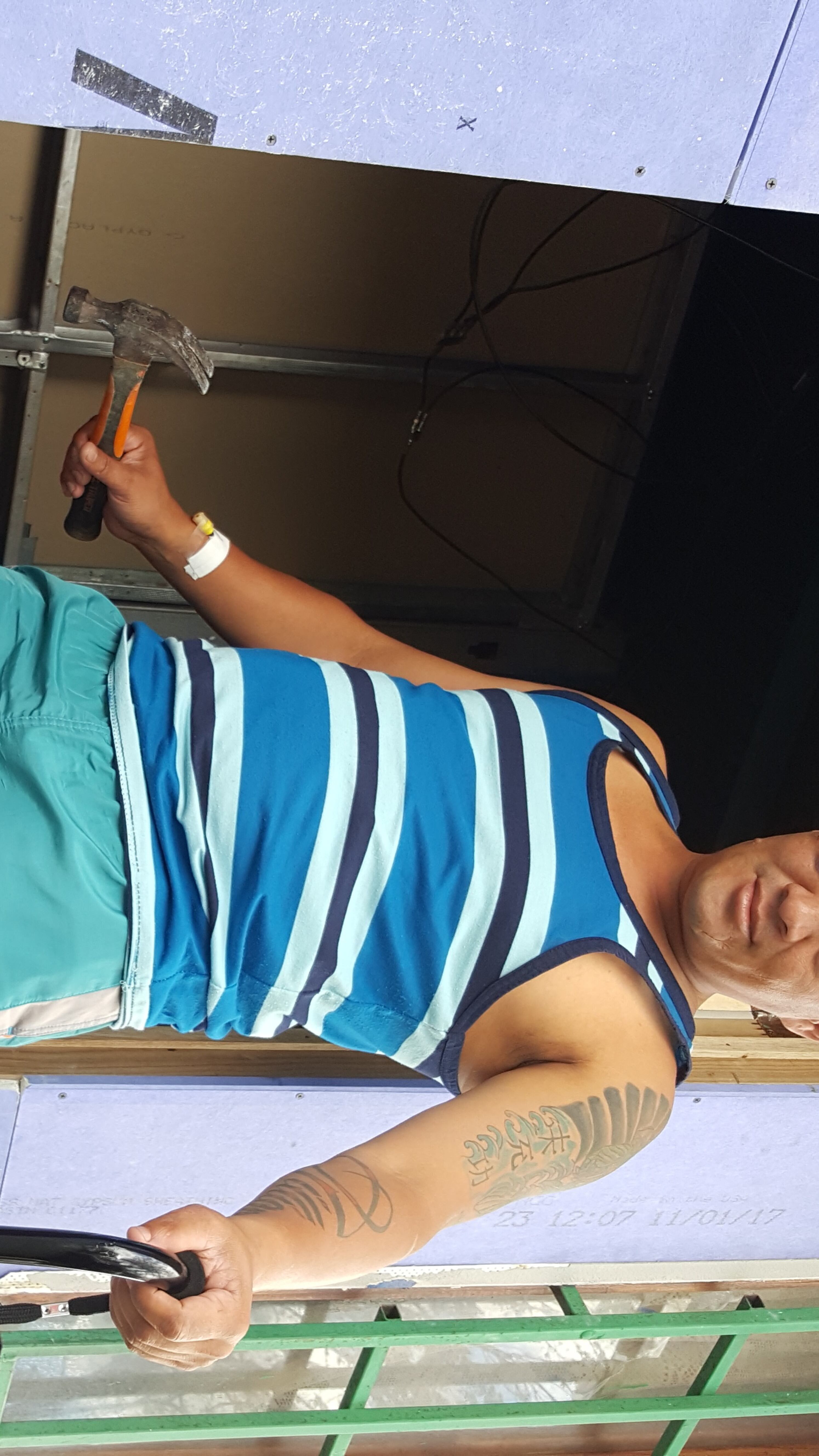 David Ramírez, esposo de doña María, a pesar de tener la cara morada por los golpes, decidió ayudar a pegar unas láminas de plywood porque no quieren pasar una madrugada igual.
