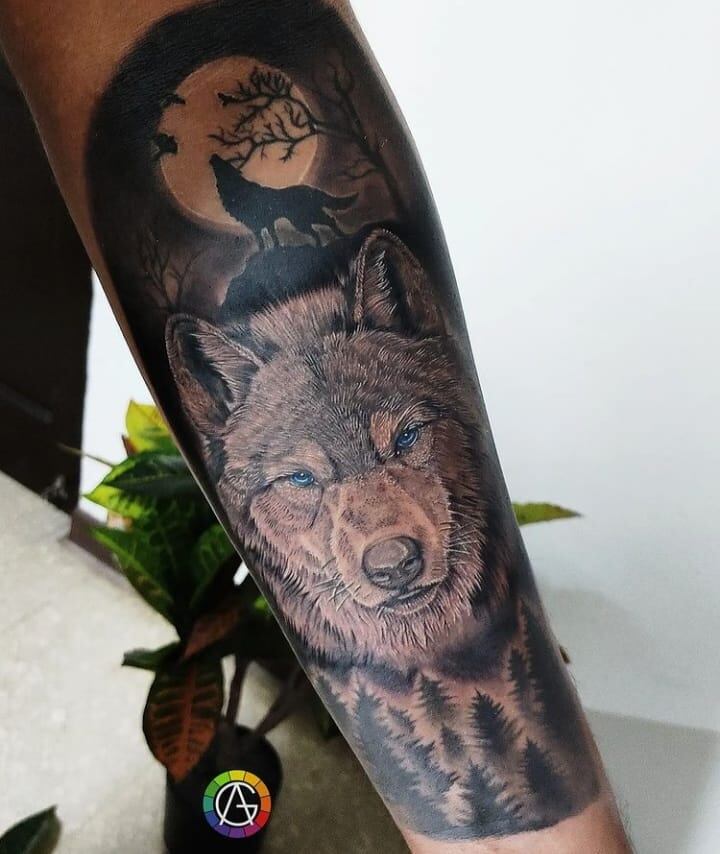 Además, él tiene dos tatuajes en los brazos, en el derecho es la cara de un lobo y un poco más arriba un lobo en medio de la luna llena y en el brazo izquierdo tiene una flecha con una especie de brújula- reloj.