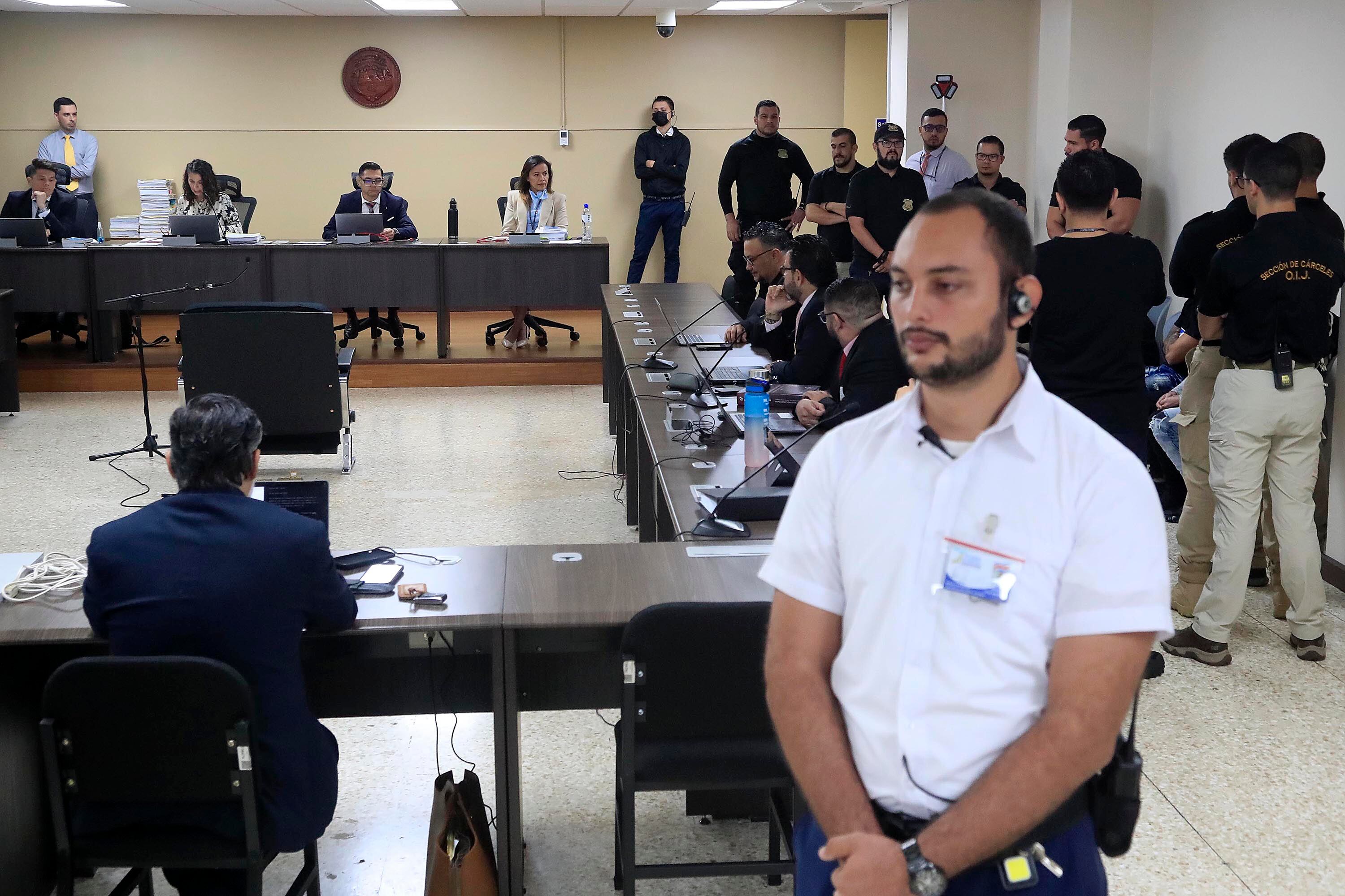 El juicio contra el imputado Dennis Cabrera y 12 personas más arrancó a las 9:35 a.m., en los Tribunales de San José, precisamente en la sala de Jurisdicción Especial de Delincuencia Organizada, luego de un gran atraso por la manifestación que mantuvo cerrada la autopista General Cañas esta mañana.