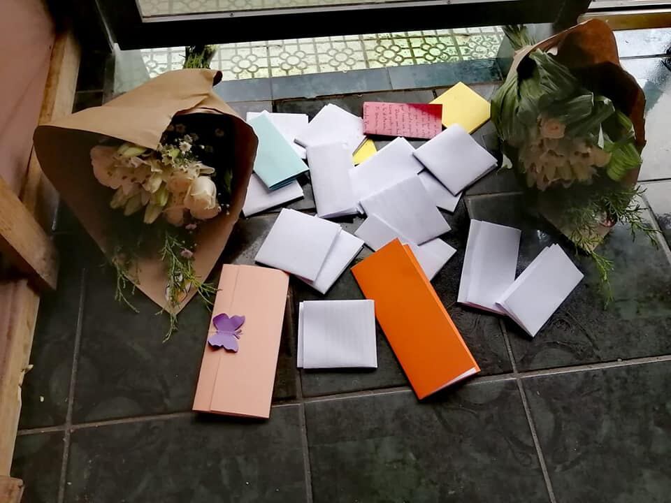 Doña Yendry Vásquez, mamá de Ali, compartió varias fotos está mañana, en la que se observan en la entrada a su vivienda cartas y flores. Algunas ya fueron colocadas en un altar que tienen en la vivienda en el que desde que la joven desapareció hacen oraciones a diario entre toda la familia.