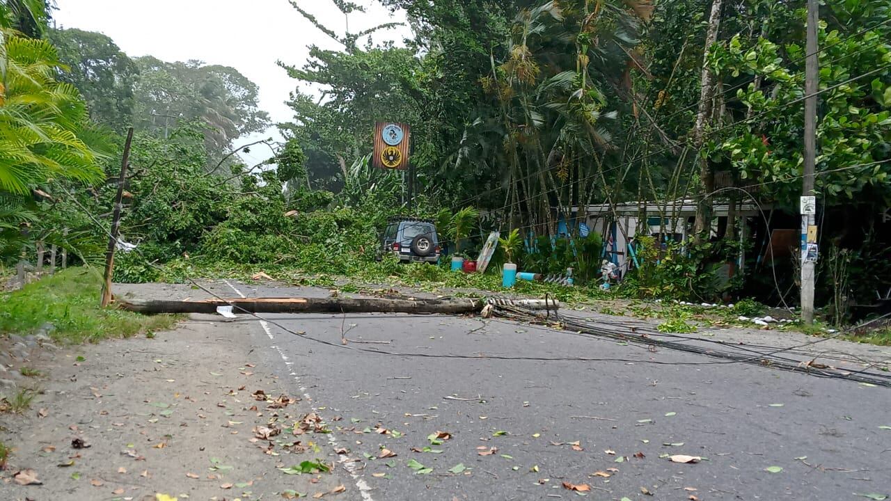 También señalaron que un tronco atravesó el parabrisas de otro vehículo que estaba en la zona del Caribe sur del país.