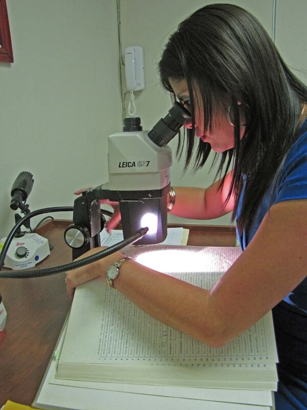 En el OIJ hay un grupo de investigadores dedicados a ver con lupa cada detalle que las personas usan a la hora de escribir sobre papel, esta sección se llama Análisis de Escritura y Documentos Dudosos.