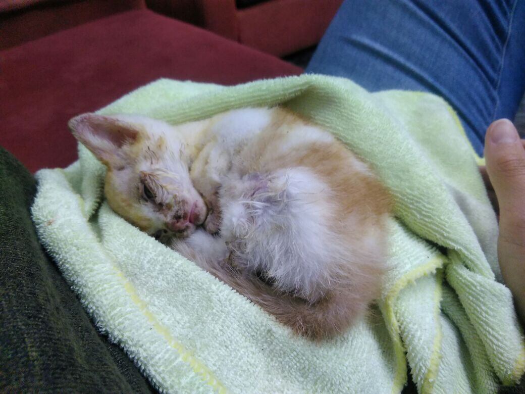 “El especialista nos dijo que tiene quemadas en las patas y la cara, calculamos que tiene pocas semanas de nacida entonces le mandó un alimento especial, gotas para los ojos y crema para las quemadas.
